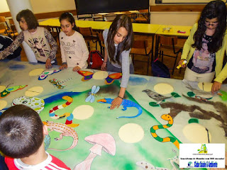 Durante as sessões executaram as suas máscaras com recuro à reutilização de materiais e de materiais oriundos da floresta e ensaiaram e instrumentaram o seu hino com que brindaram a comunidade escolar no intervalo das 10 horas.